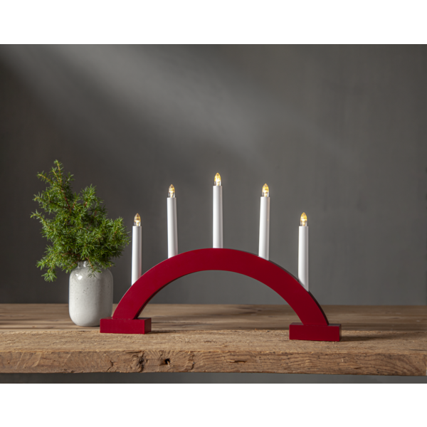 Batteridrevet, buet adventslysestake laget av tre. Lysestaken er liten og nett og derfor enkel å plassere i både vinduer og på en skjenk. LED-lys som skinner vakkert og skaper julefølelse i hjemmet. Dette produktet har FSC®-merket.
