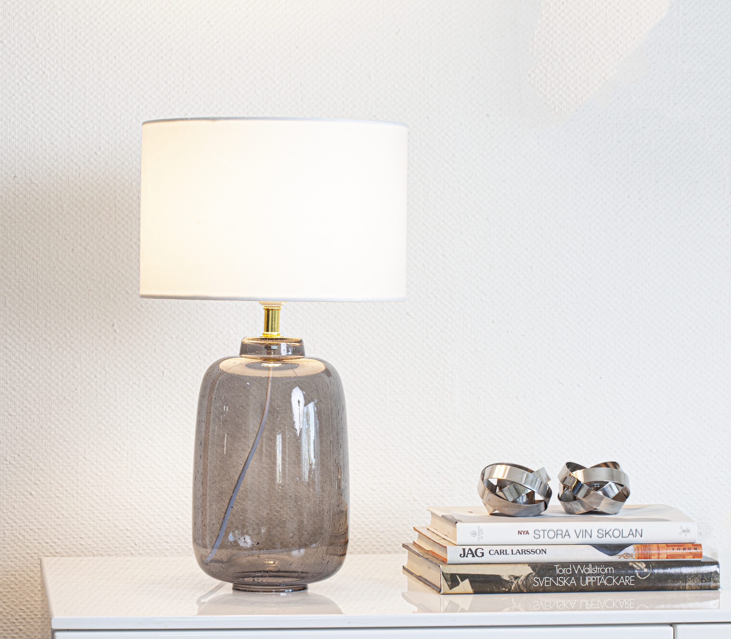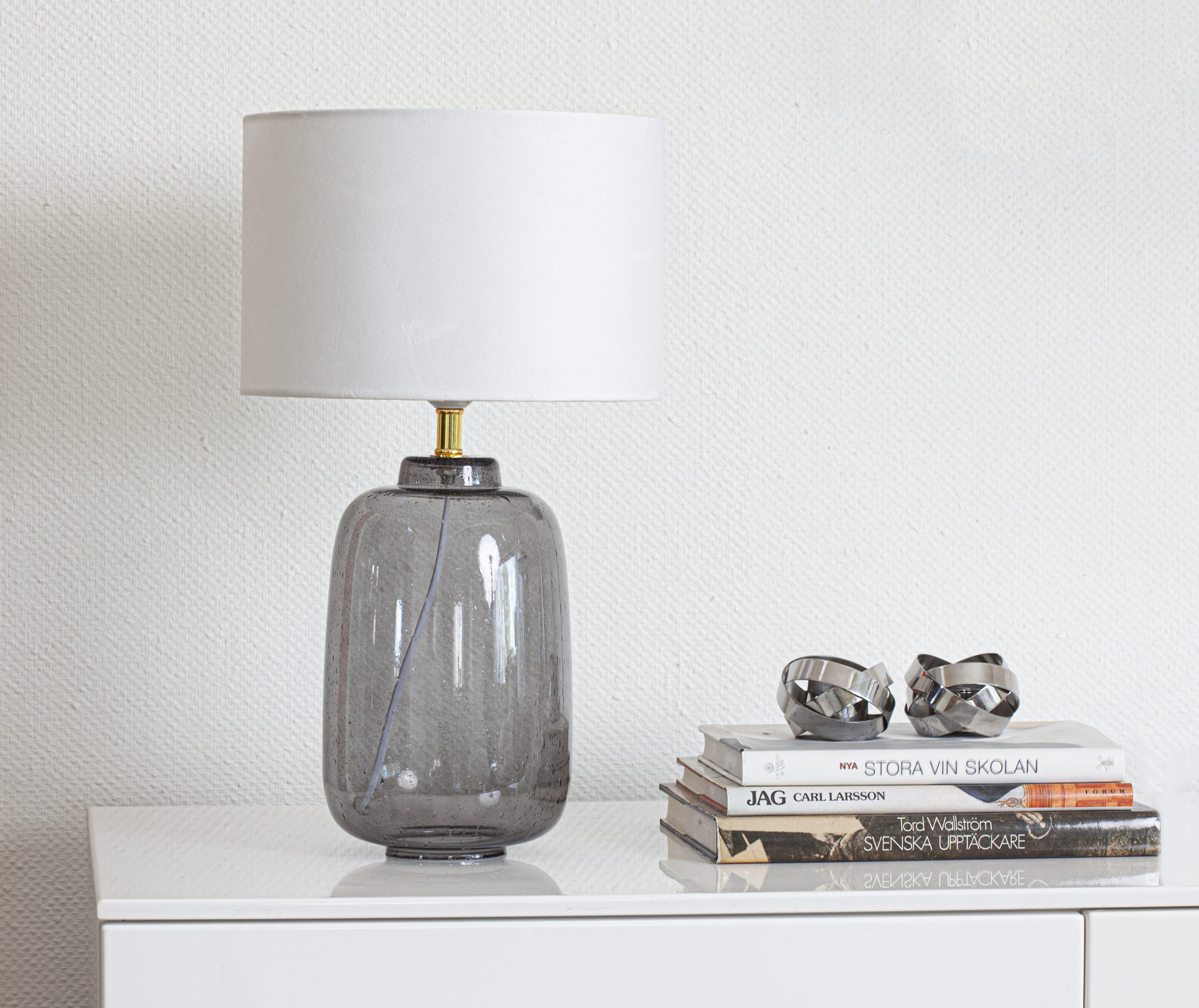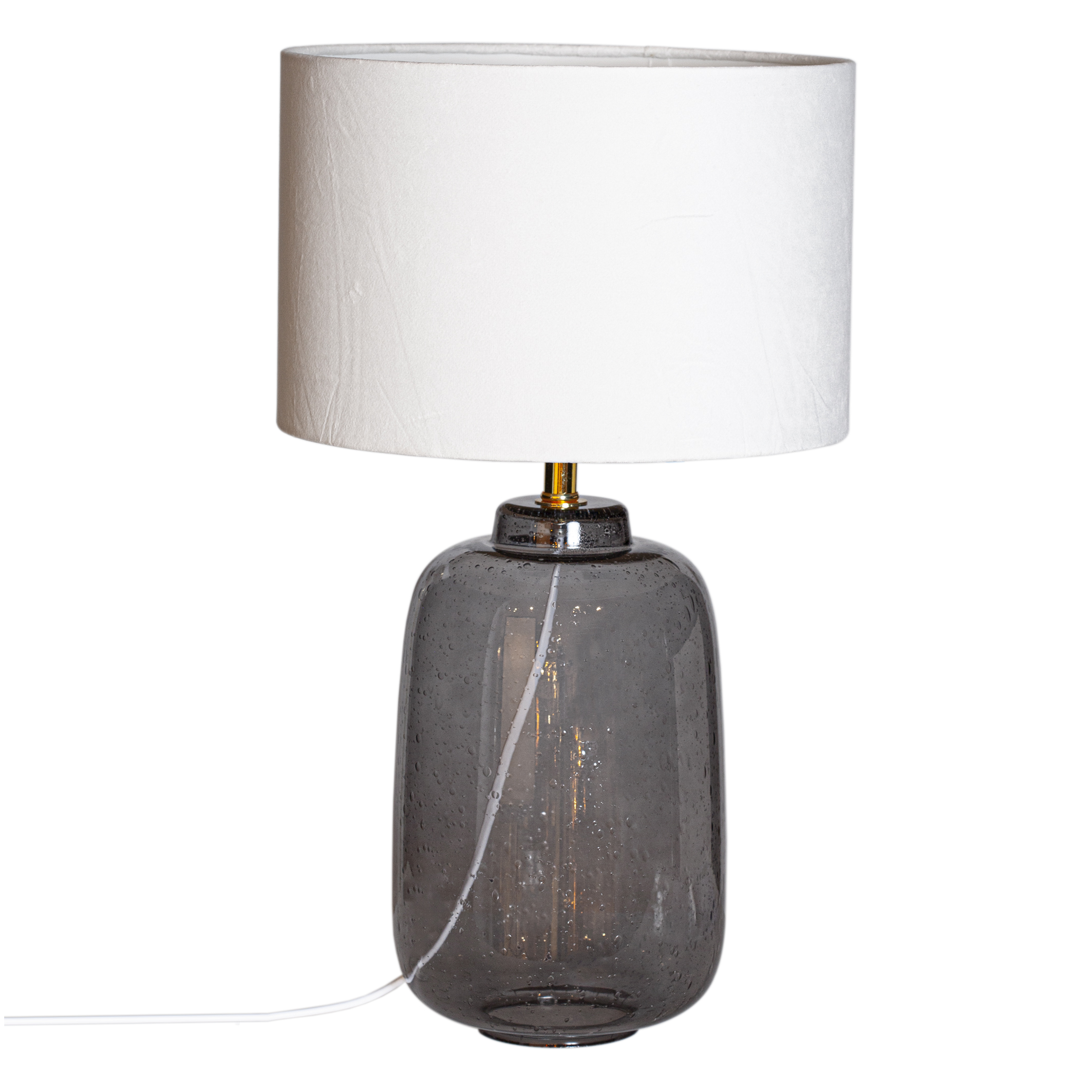 Bordlampe i glass, leveres med hvit skjerm
