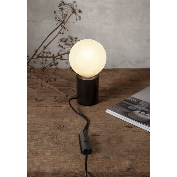 Hvit ledningsdimmer som monteres på ledning for innendørsarmaturer. Brukes med dimmerkompatible LED-lyskilder. For å starte ledningsdimmeren etter montering, trykk raskt på trykknappen. For å justere dimmingen, hold inne trykknappen.