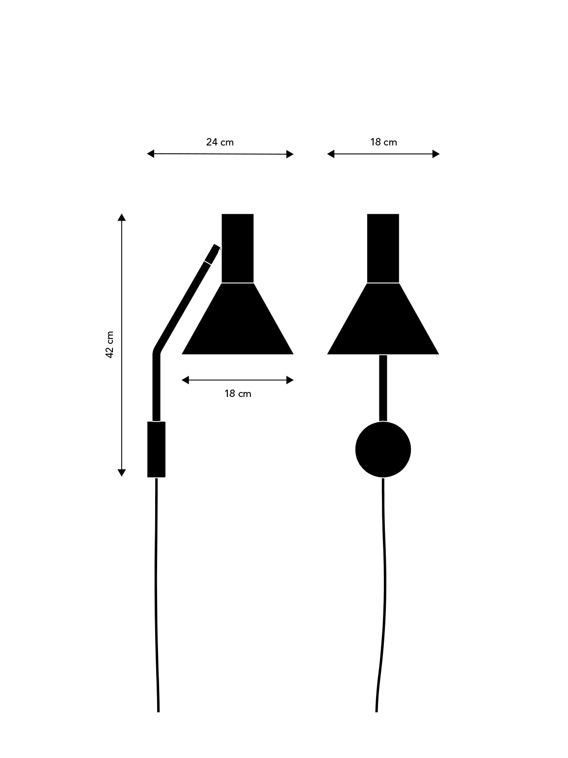 Lyss vegglampe er en enkel og enkel utgave av en vegglampe. Den koniske skyggen, med sin reflekterende hvite underside, leder lyset akkurat dit du trenger det. En tiltbar skjøt er plassert mellom skjermen og armen, og lampen er montert på veggen med en enkel rund metallbase. Vegglampen er en funksjonell og stilig lampe.