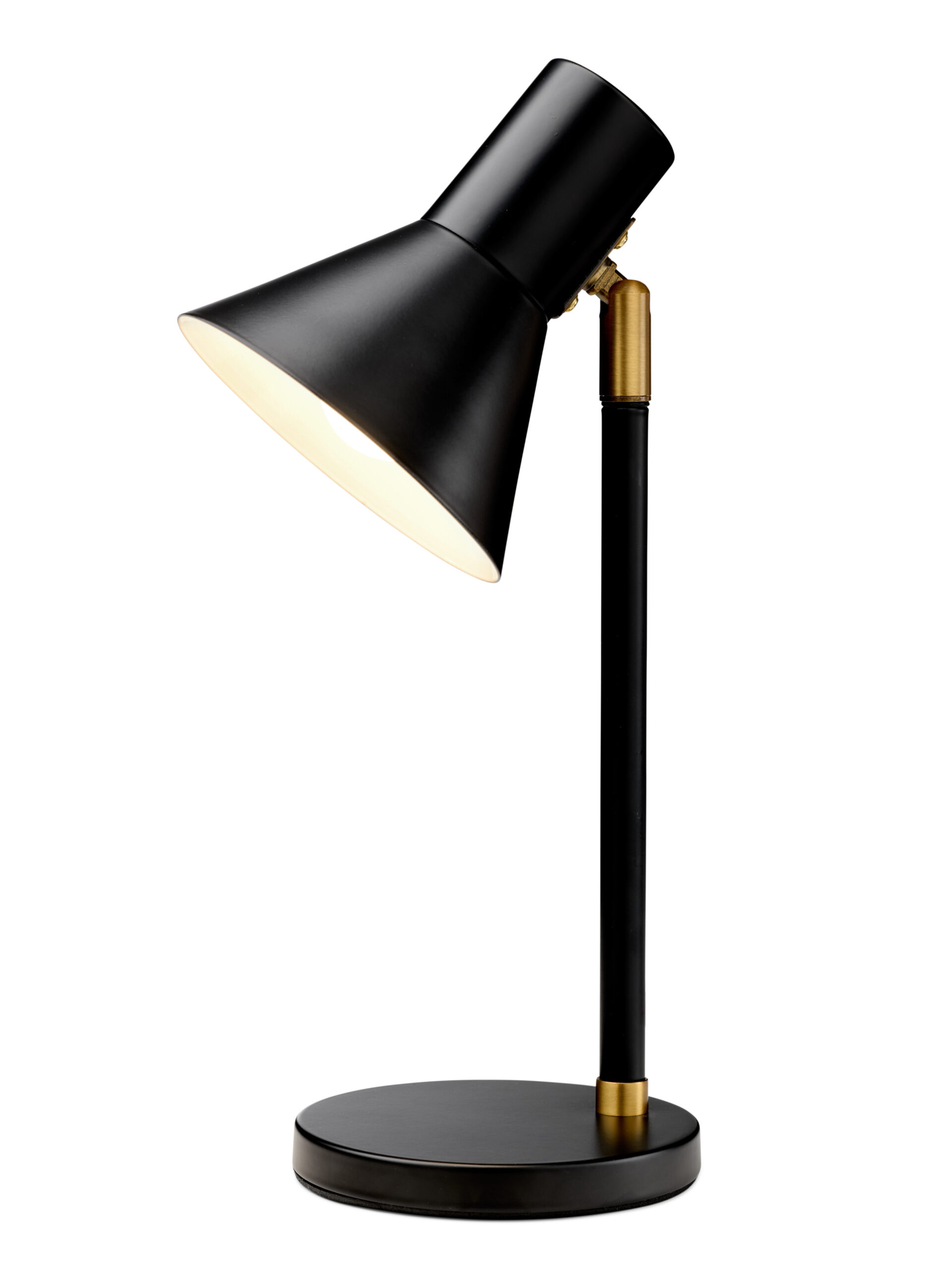 Bordlampe med en nydelig kremfarge og detaljer i børstet messing. Perfekt ved på skrivebord eller der du trenger ekstra lys eller godt arbeidslys.